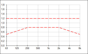 DIN 18041: tolerance range for speech | DIN 18041: tolerance range for music | |
