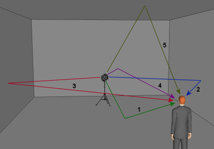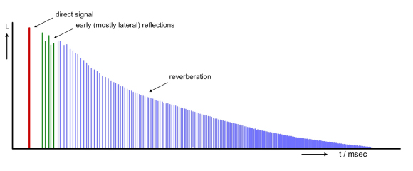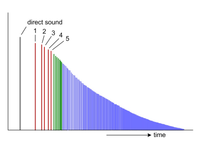 first reflections in a room between source and listener | these first reflections as 'early reflections' |
