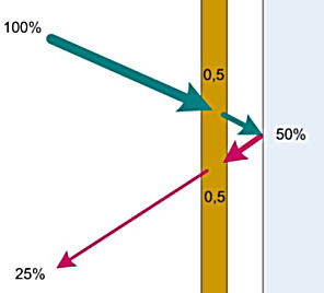 The absorption coefficient is a measure of the efficiency of a material in absorbing sound. If 70% of the sound energy is absorbed, the absorption coefficient is 0.70. The absorption coefficient of 1.0 is assumed an open window, there all passing through sound energy never will return into the room again, resulting in a 100% absorption.