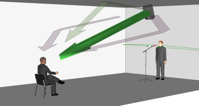 A modulated test signal is fed to a loudspeaker at the talker's location. The receiver's microphone is positioned at the receiving listeners location. The system gives a direct read out of the measured RASTI value at the receiver position.