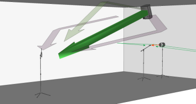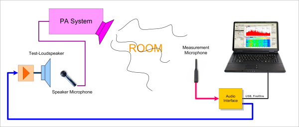 speaker - room - mic - PA system - room - listener | measurement setup |