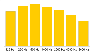 The measurement is calculated by 34% of the 2000 Hz range, 25% of the 1000 Hz range and 16% of the 500 Hz range.