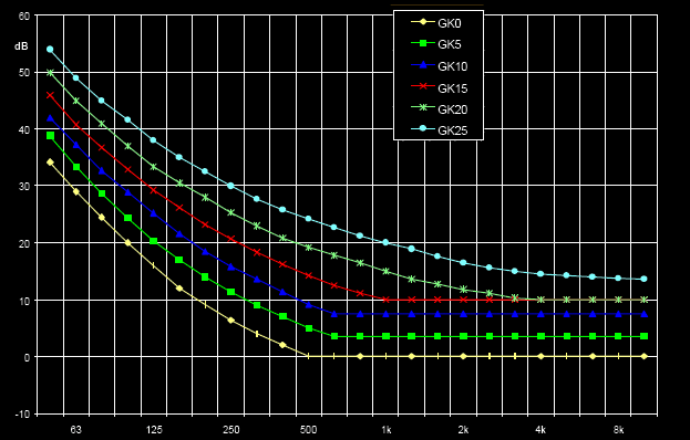 Level dB(A): | 14 | 18 | 22 | 26 | 30 | 34 | 39 | 44 | 48 | 53 | ||