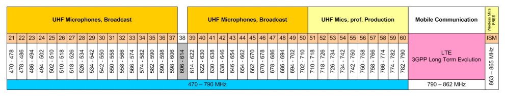 Because of the switching from analog to digital TV channels in nearly all countries large changes within the frequency tables take place. The freed ranges from older analog TV channels are used for new services. With these re-arrangements many of the former UHF channels for wireless microphones are now prohibited or will be prohibited soon.