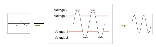 The Class A technology is relatively simple. The amplifier circuit must be biased to make sure it works on the linear part of the transfer characteristic curve of the circuit to ensure minimal distortion. This means that the device is never 'off' and it guaranties a good high frequency performance and feedback loop stability. The Class A amplifier is relatively inefficient but can deliver very good sound quality. The efficiency is about 50%.