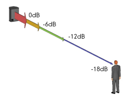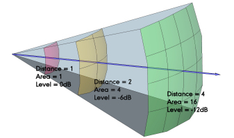 The sound pressure level diminishes inversely with the square of the distance from the source (as all other forces).