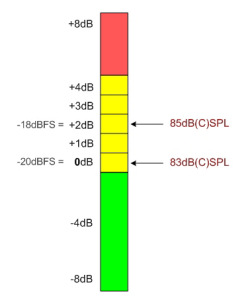 The above described difference between -20dBFS and -18dBFS should be settled in this way (Bob Katz): The reference level of SMPTE RP200 as -18dBFS (RMS) is used to generate a sound pressure level of 85dB SPL(C) and the reference level -20dBFS should be used to generate a sound pressure level of 83dB SPL(C).