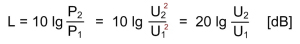 the formula: p (in dB) = 20log U1/U2. U1 is the voltage level under test and U2 is the reference value.