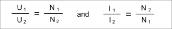 The secondary voltage (VS) equals the ratio of secondary to primary turns multiplied with the primary voltage (Vp):