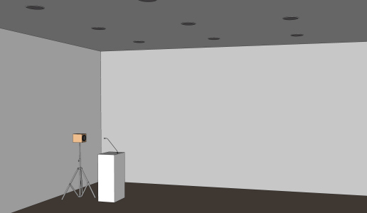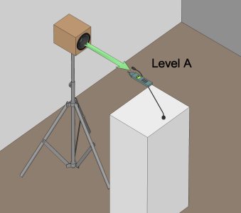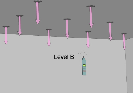 Now with the test tone still running unchanged the system should be turned on with all employed signal processing for regular working conditions to the maximum gain before feedback. At several listening positions in the room (in ear height) the level B should be measured and documented.
