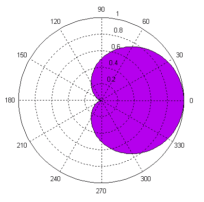 The cardioid microphone shows a heart-shaped polar pattern and has the least signal output for sound sources directly behind the microphone. The total receiving angle of a cardioid microphone is about 130 degrees (about 65 degrees to both sides of the zero axis).