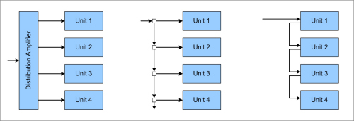 Often the input impedance is not known and level problems can occur. Also with a high number of T-connectors in a chain, the reliability of the entire system is at risk.