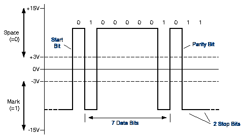 - logical "0" (Space) is represented by a positive voltage