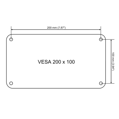VESA Mounting 200x100 usually for Displays between 12" and 24" and up to about 15kg |
