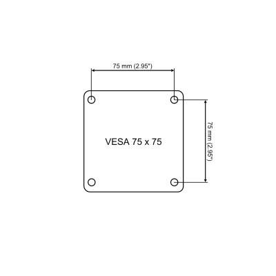 Standards: VESA 75 (75 x 75), 100 (100 x 100), 200 x 100, 200 x 200, 400 x 200, 400 x 400, 600 x 200, 600 x 400 oder 800 x 400